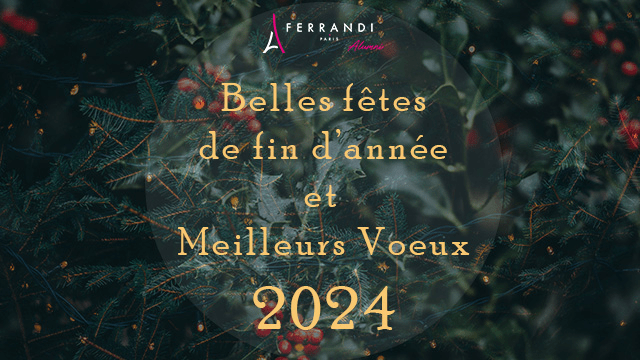 Chers alumni de FERRANDI Paris, En cette période de célébration et de réflexion, toute l'équipe FERRANDI Alumni souhaite vous transmettre ses vœux chaleureux pour la nouvelle année. Que cette période festive vous apporte joie, bonheur et réussite dans tous vos projets. Nous sommes fiers de voir la communauté FERRANDI Alumni s'épanouir, portant haut les couleurs de l'excellence dans le monde de la gastronomie et de la gestion hôtelière. Que 2024 soit une année remplie de succès, d'opportunités et de moments mémorables. Nous espérons continuer à renforcer les liens qui nous unissent, à partager des expériences enrichissantes et à contribuer ensemble à l'évolution constante de notre réseau. Meilleurs vœux pour une année nouvelle pleine de promesses et d'accomplissements ! L'équipe FERRANDI Alumni Merci pour une année 2023 riche en rencontres ! A partir de janvier 2024, découvrez de nombreuses nouveautés : Pour continuer à recevoir les actualités de votre réseau :