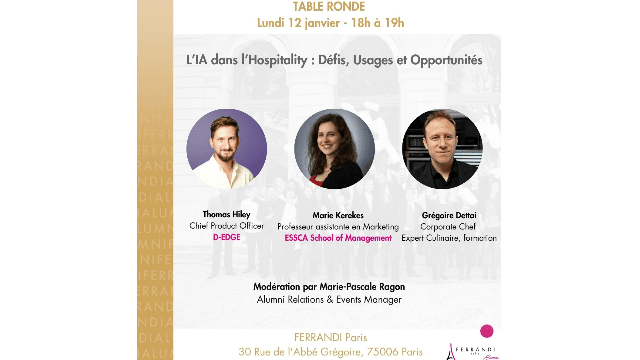 Cette table ronde aura pour thème : "L'IA dans l'hospitality : Défis, Usages et Opportunités"