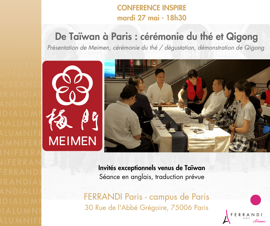I’m inviting you on Wednesday 27 May at 6:30 PM to a unique moment of discovery and cultural journey, on the occasion of the exceptional visit of Meimen, a tea producer specially coming from Taiwan to FERRANDI Paris.